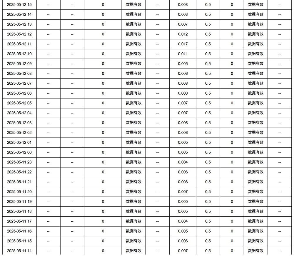 車間排口在線小時(shí)數(shù)據(jù)2025.5